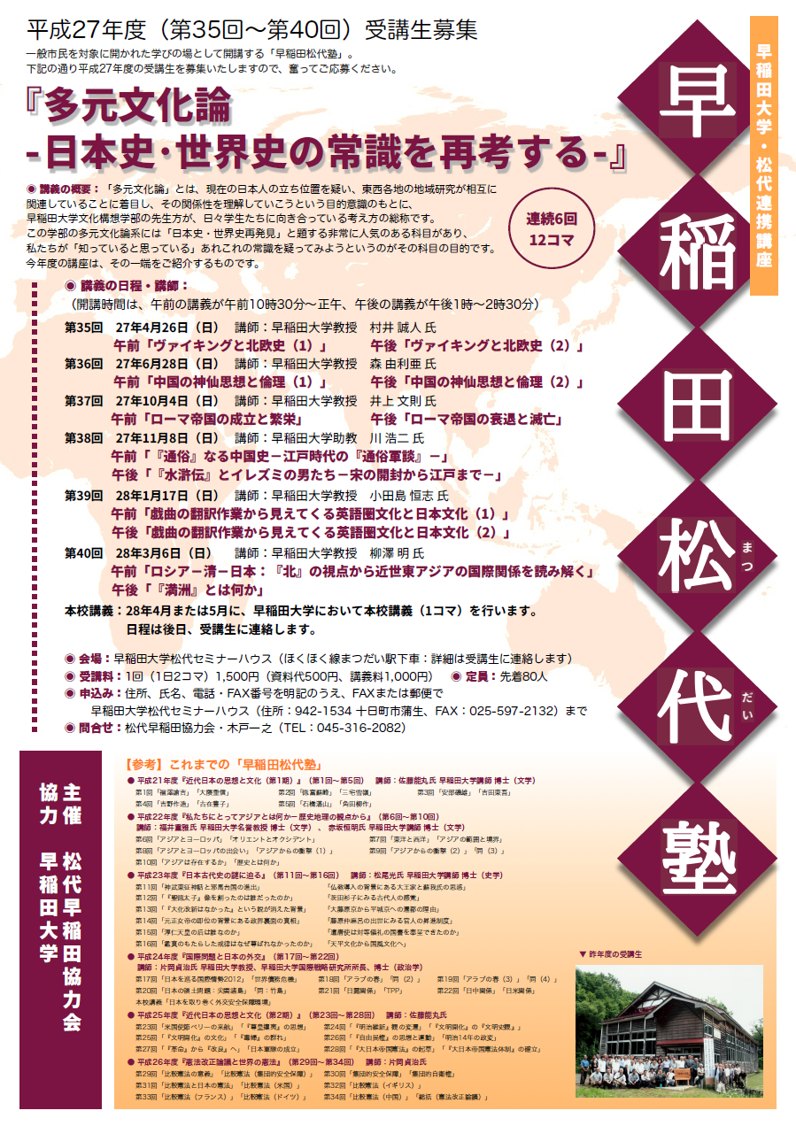 2014年度アルバム◎2015年度講座「多元文化論-日本史・世界史の常識を再考する-」